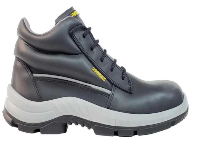 Botín de Seguridad Francés, certificado bajo norma IRAM 3610, confeccionado con cuero vacuno desc. flor + sintético simil flor + reflectivo, Negro