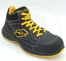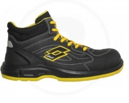 Zapatilla caña alta de Seguridad Sportiva, certificado bajo norma IRAM 3610, confeccionado con cuero vacuno nobuck + tejido poliester + tpu + reflectivo, Negro/Amarillo.