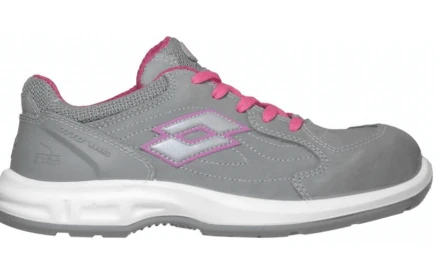 Color corte GRIS con fucsia, entresuela blanco, suela gris. certificado bajo norma IRAM 3610, confeccionado con cuero vacuno nobuck + tejido poliester+ reflectivo,