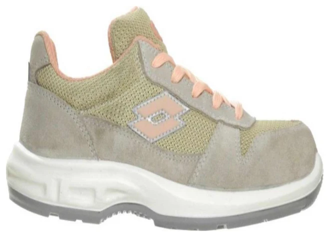 Zapatilla de Seguridad Sportiva, certificado bajo norma IRAM 3610, confeccionado con cuero vacuno descarne nobucado, waterproof + tejido poliester + Reflectivo, Visón/ Salmón.