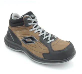 Zapatilla caña alta de Seguridad Sportiva, certificado bajo norma IRAM 3610, confeccionado con cuero vacuno nobuck + tejido poliester + tpu + reflectivo, Negro/Setter.